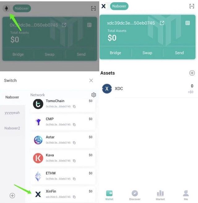 Step 3: Click upper left logo to switch your network to XinFin, then you can manage your assets on XDC network.