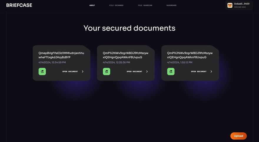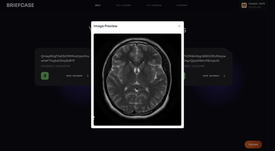 Briefcase addresses the pressing need for secure and efficient exchange and storage of medical files in today's digital healthcare landscape. Traditional methods of file management often lack the necessary security measures to protect sensitive medical data from breaches and tampering. Briefcase offers a solution by leveraging blockchain and encryption technology to ensure the utmost security and integrity of medical files. By decentralizing storage and incorporating transparent transaction recording on the blockchain, Briefcase eliminates vulnerabilities associated with centralized systems and provides a resilient platform for medical file management. With its user-friendly interface and subscription model, Briefcase makes it easy for healthcare professionals, researchers, and patients to securely exchange and store medical data while supporting ongoing innovation and development in the field.