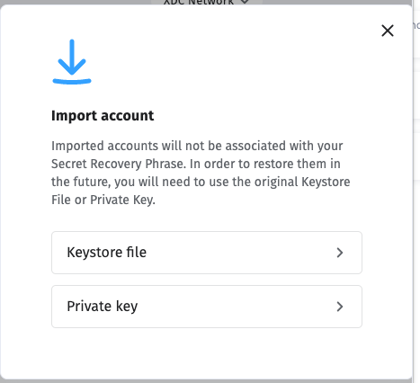 - Once you click on the Import Account From Another Wallet option, select a Keystore file option.