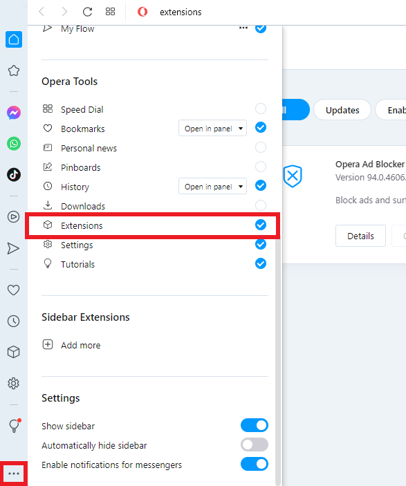 Open your Opera Browser Menu. Under Extensions, click
