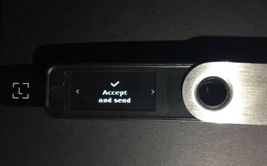 Press the right button on your Ledger Device to review the transaction details (Amount, Address, Nonce, and Max Fees) until you see “Accept and Send.”