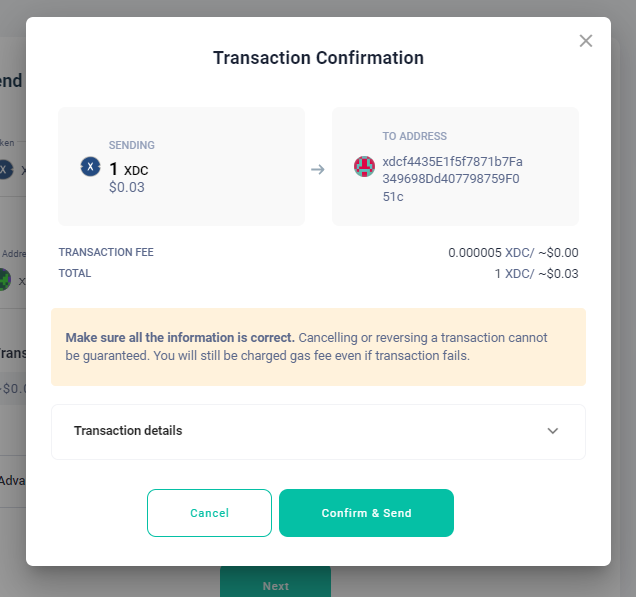 Step 12: Confirm the transaction details and click on the “Confirm & Send” button.