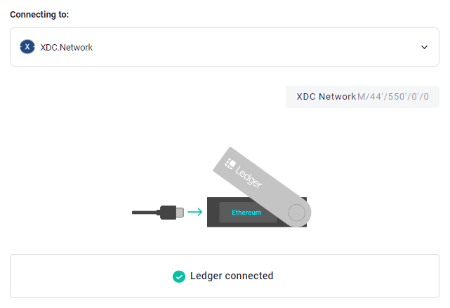 Once you connected to the Ledger device, you will be able to see the message “Ledger Connected.”