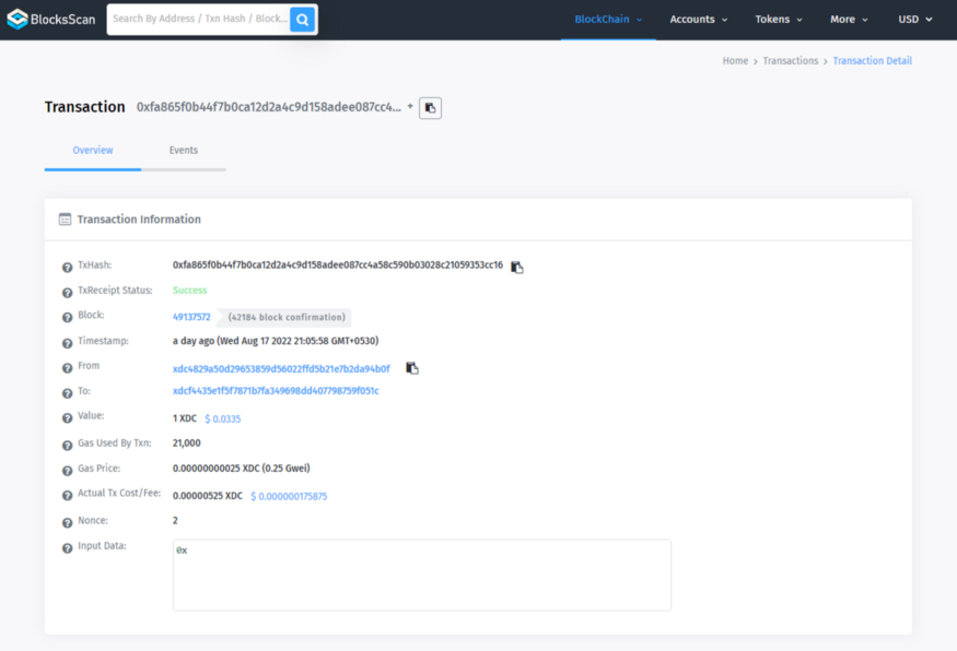 By clicking on the Transaction Hash, you can check the transaction details on XDC BlocksScan Explorer.