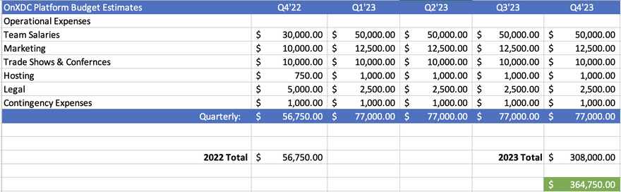If there is enough support for this initiative within the XDC community, then the budget outlined below will be distributed from the XDC Ecosystem Development Fund and used to fund the XDC Community Initiative.