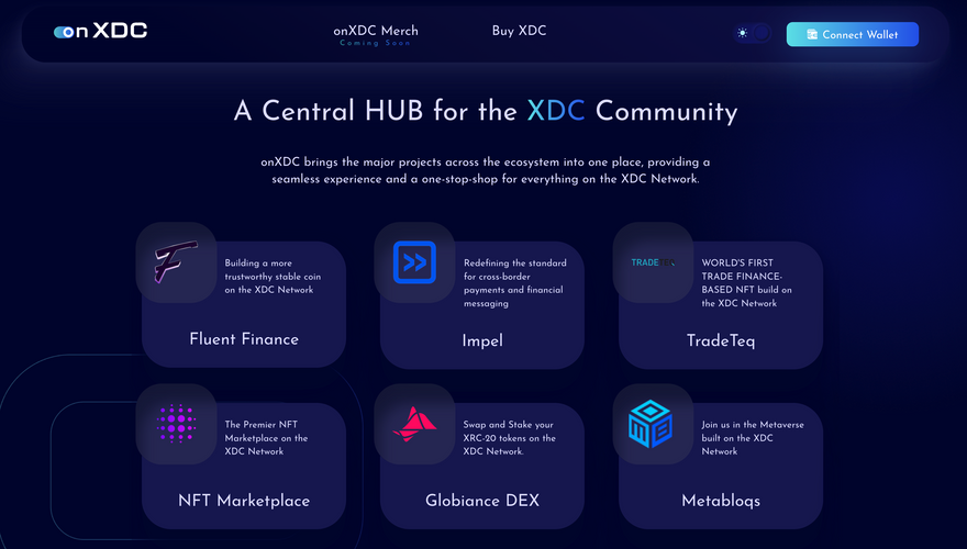 onXDC brings all projects across the XDC ecosystem into one place, providing a seamless experience and a one-stop-shop for every project built on XDC Network. As the community grows and we continue to develop amazing projects that will change the world. We need one place to access everything on the XDC Network. (Future Website: OnXDC.Network)