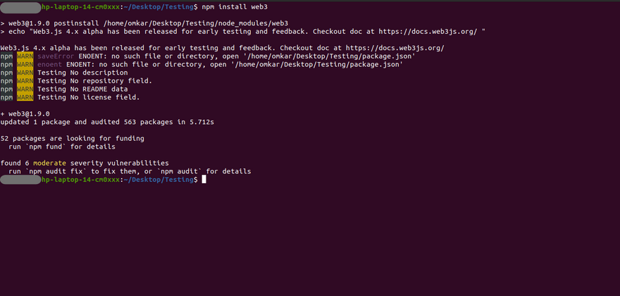 - To install Web3, enter below command: