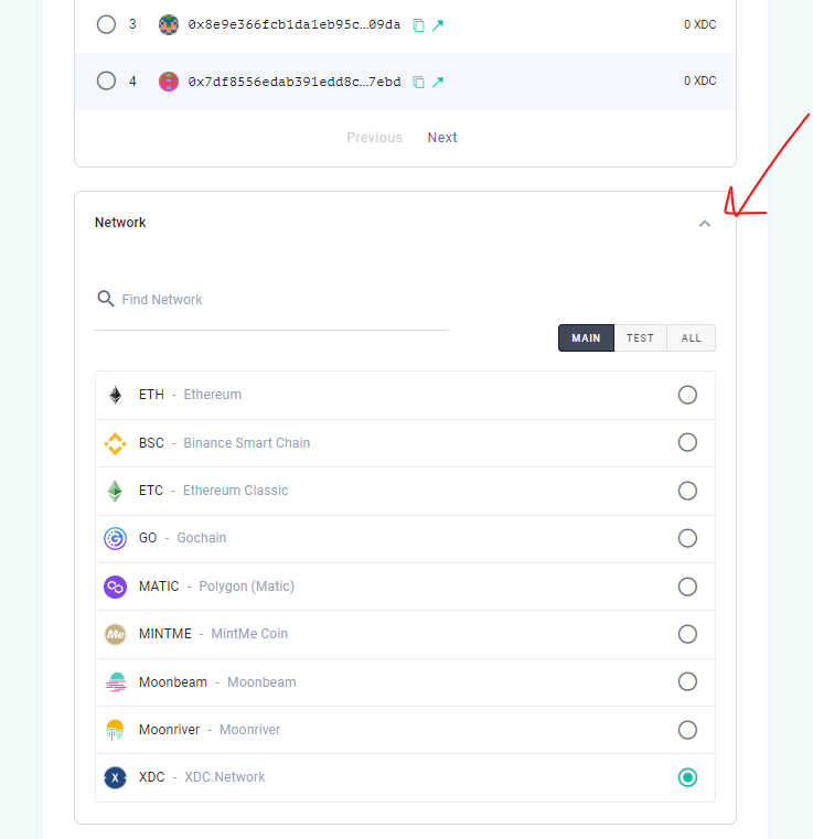 Connecting to XDC Network + make sure next dropdown also you selcect XDC Network