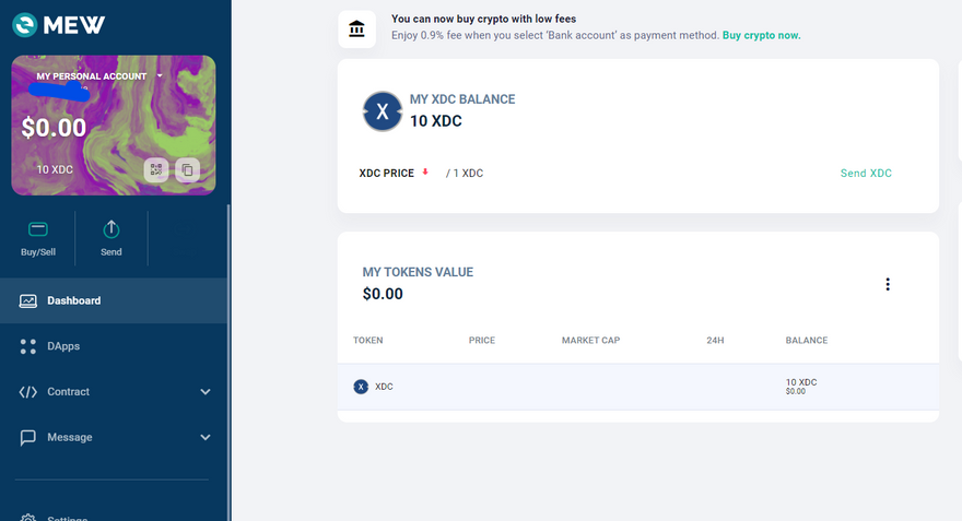 There will be a new Account in your MEW Wallet where you can directly send your XDC to the public ID or simply scanning that QR. Always test the wallet address before transfering huge amounts