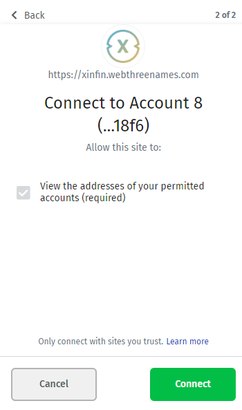 Now click on Connect button of the XinFin Name Service, to connect the website.