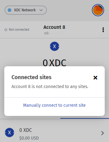 Now, Unlock XDCPay. Click on the 3 dots menu in the upper right corner and Click on Connected sites.
