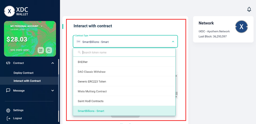 This is the demo contracts to interact with the contracts you will have to first deploy the token at wallet.apothem.network/#/wallet/de... and then you will be able to interact with the contract.