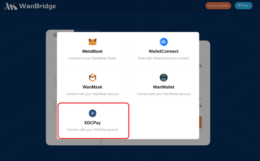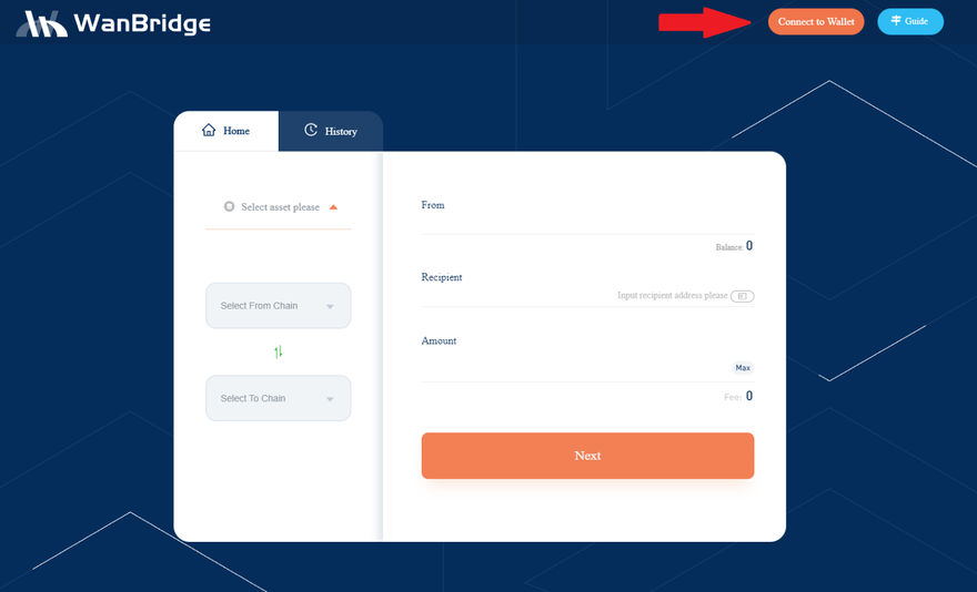 Head over to WanBridge Web, then click “Connect to Wallet”.