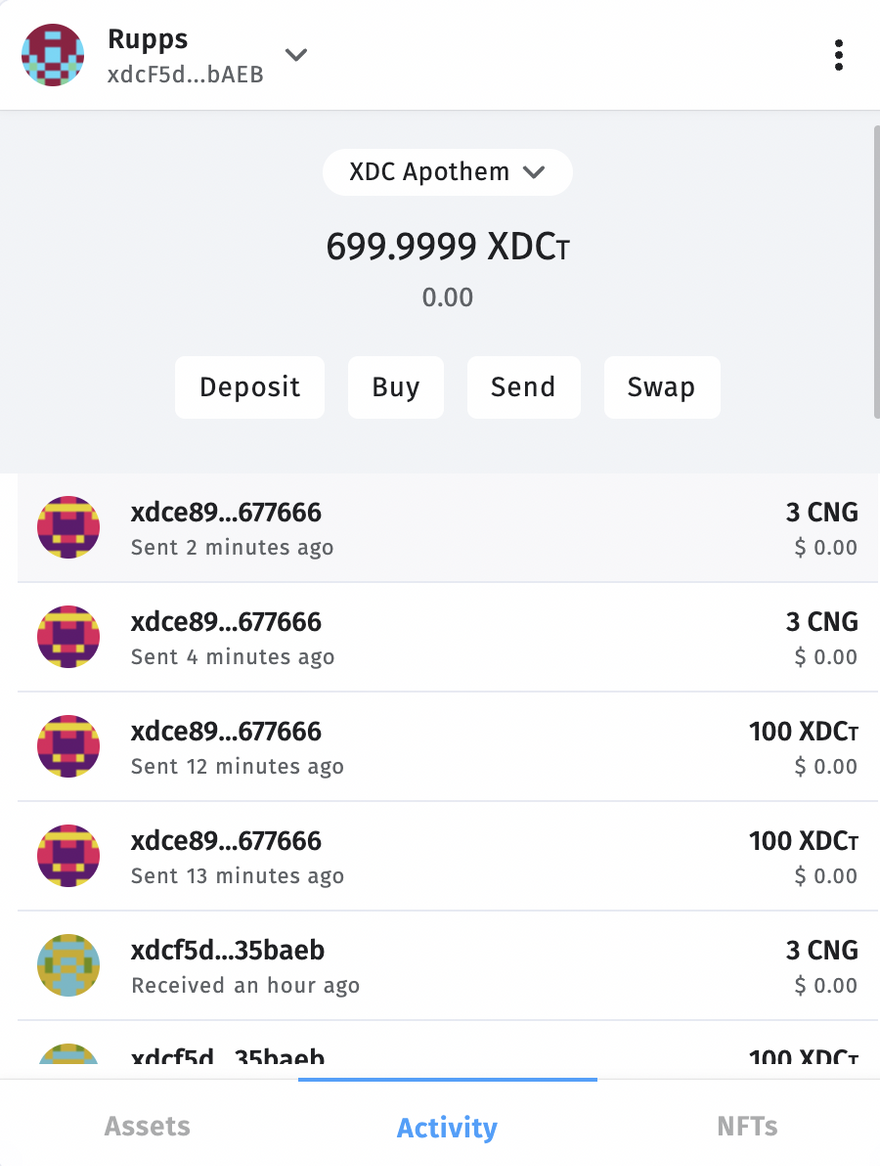 Access your account with the credentials and will see how easily we can transfer XDC and XRC20 tokens.