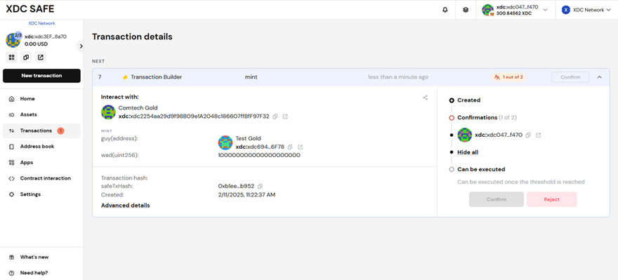 - Smart-Contract Interactions: Interact with any verified smart contract directly from XDC Safe.