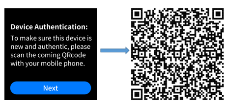 After doing so, you will see the “Device Authentication” interface. By clicking ‘Next,’ you will see a unique QRcode shown on your S1 device.