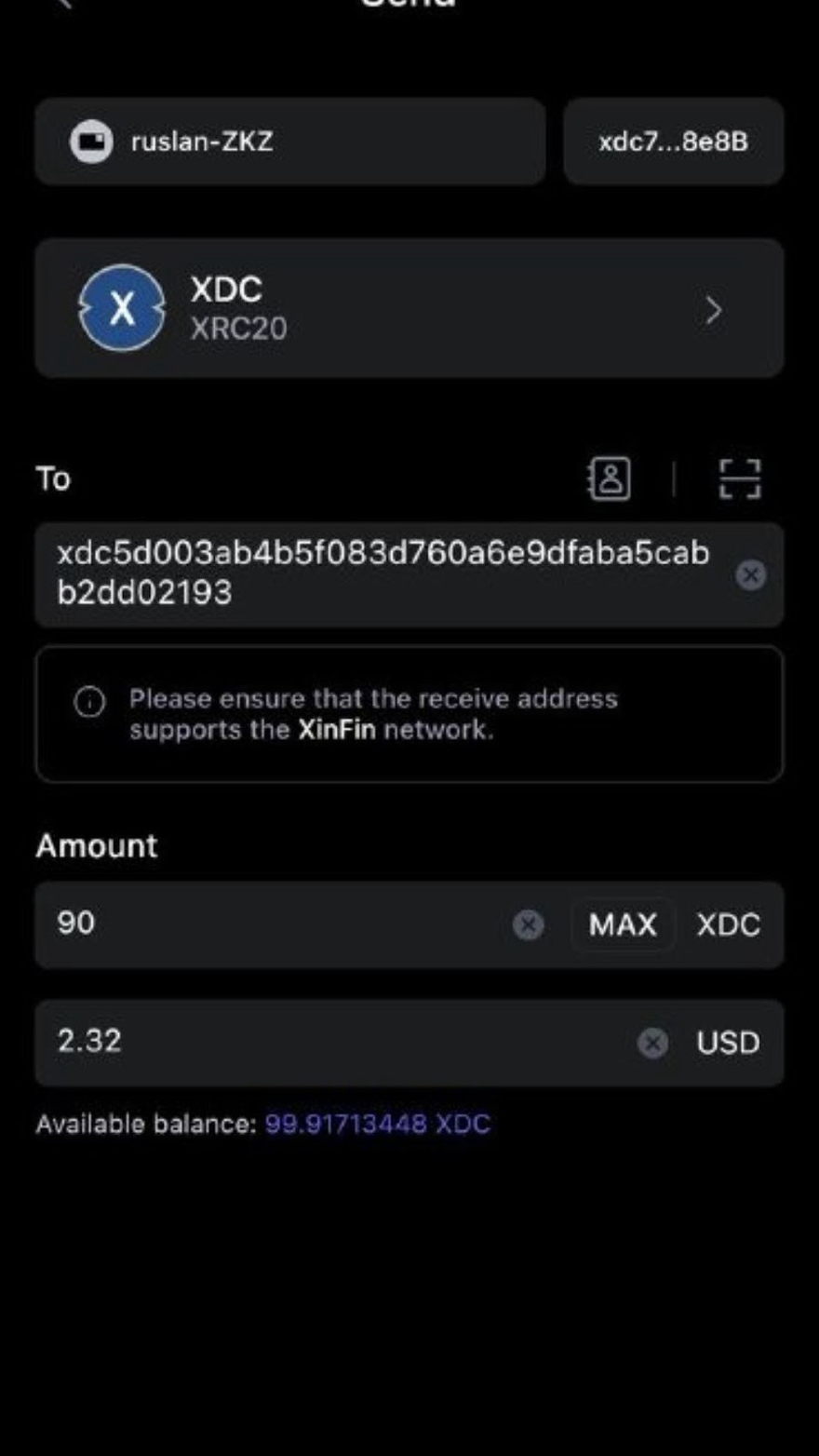 How to Send XDC with a S1 Hardware Wallet