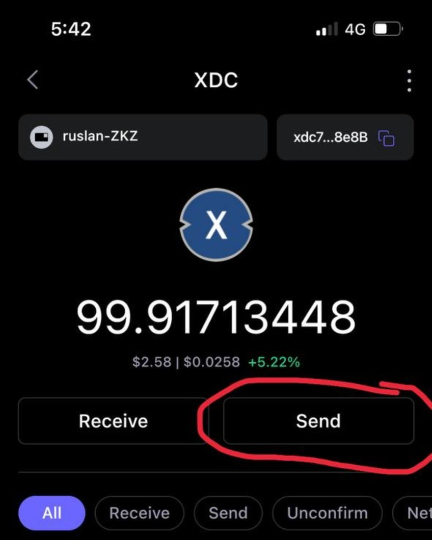Step 1 On the SafePal App, choose the XDC as you want to send, and click ‘Send’.