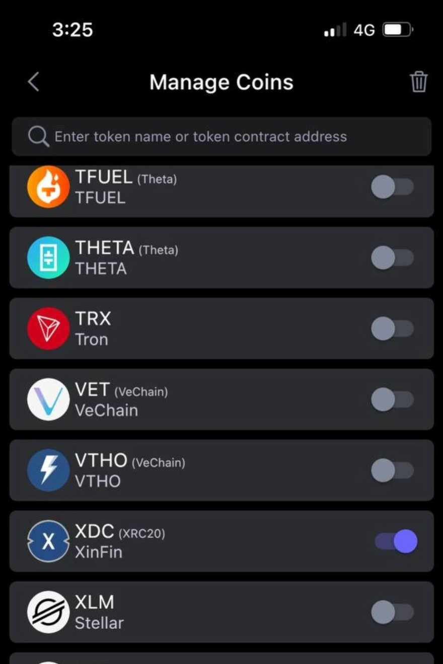 Example A: If you have added XDC in the S1 hardware wallet, it means that the S1 device has already activated the signing algorithm for all the XRC20 tokens as well, and you don’t need to manually add any XRC20 token issued on XDC Network to the wallet anymore.