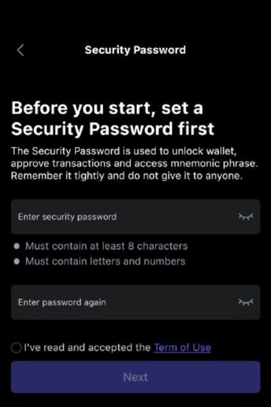 If this is the first time you use the SafePal App, it will take you a few minutes to complete the security settings on the SafePal App, including setting a Security Password, fingerprint, and Pattern.