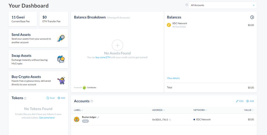 But no worries with My Crypto wallet mycrypto.com wallet it works completely fine with the XDC Network path
