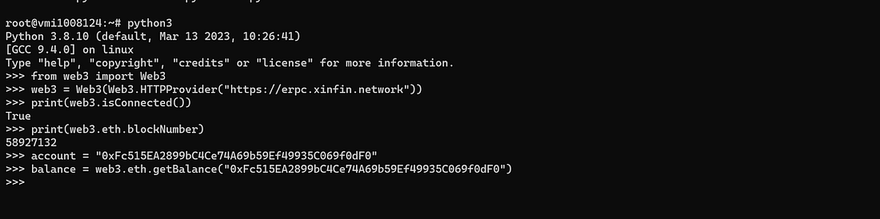 And that’s it! That’s the conclusion to the first part of this tutorial. Now you’ve seen what the Web3.py library is and you can get started using it to check XDC account balances.