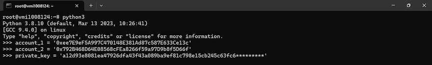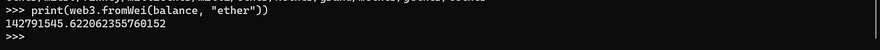 Now that all of your dependencies are installed, you can start developing with Web3.py! First, you should fire up the Python shell in your terminal like this: