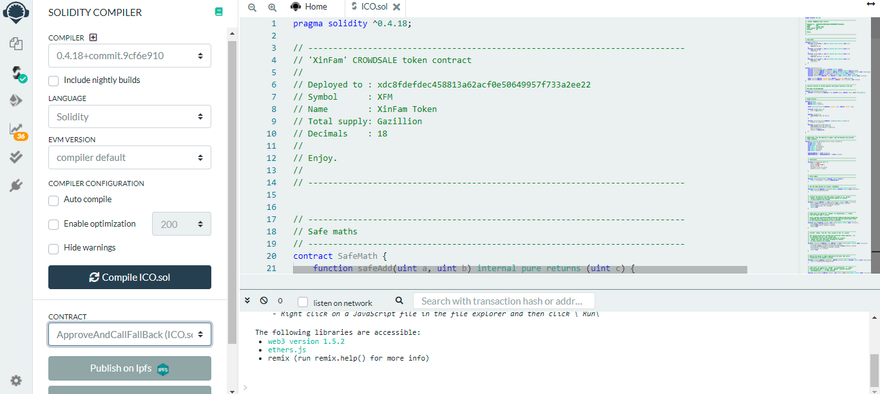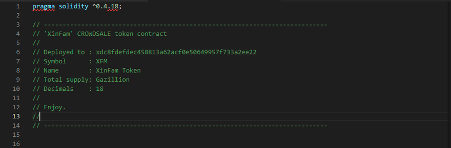 - Go to Line 3–15 and look at the comment section. Although this is a comment section, this will help you down the track. The name of the template ICO is XinFam CROWDSALE token contract.