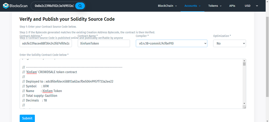 - Go to the Contract Code Tab → Click Verify and Publish