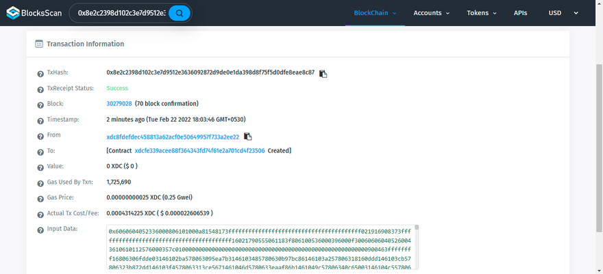- After that, you will see the pop-up from XDCPay you will have to submit the transaction, and after that contract has been deployed.