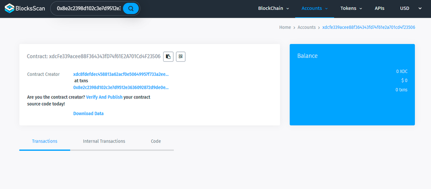 As you can see The Apothem Network XDC has been allocated to the contract owner’s address.