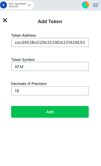 After adding the token you will be able to see the XFM Token on the XDCPay Extension wallet