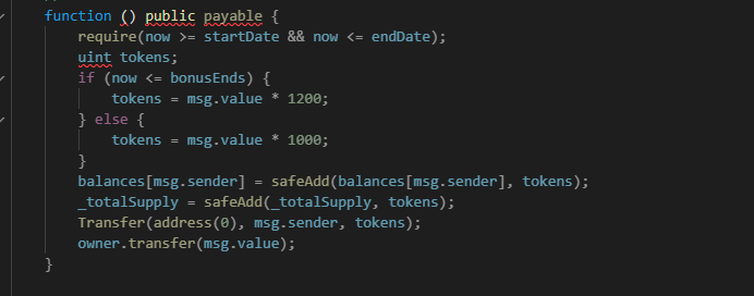 - On line 122 you will have to define your first ICO parameter, when does the bonus ends?