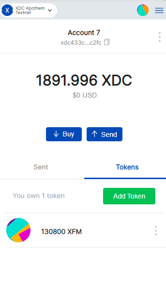 It’s pretty straightforward, you send Apothem XDC to the just deployed Contract Address and it will send you your brand new Tokens in return at the rate that you previously defined on the Code, and anyone who sends will also receive the XFM Tokens.