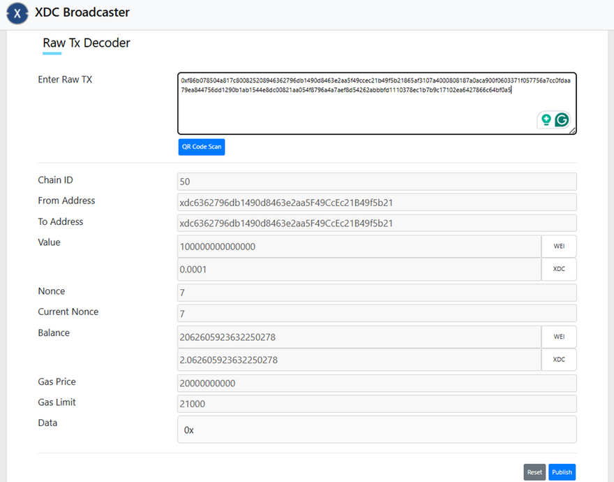 - Open the XDC Broadcast Tool: ○ Go to https://broadcast.xinfin.network/build/raw-tx.