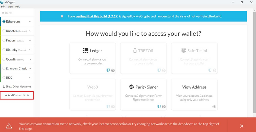 - Add XDC Network to MyCrypto: ○ Open MyCrypto and navigate to "Change Network". ○ Click on "Add Custom Node".
