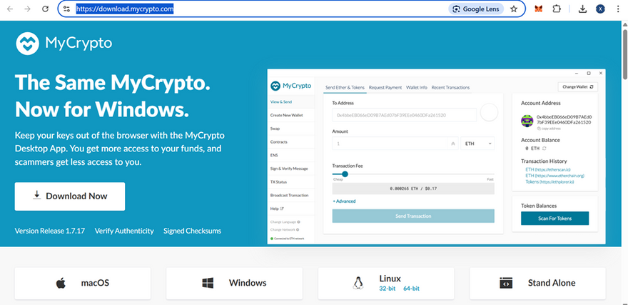 ● MyCrypto Wallet: Download from https://download.mycrypto.com/ according to your operating system.