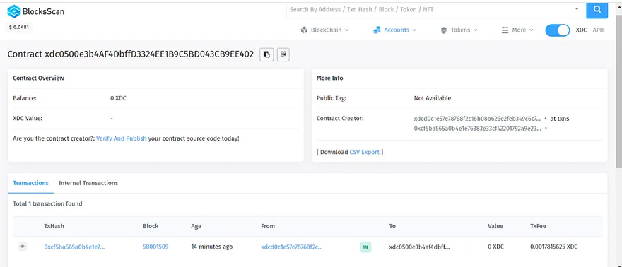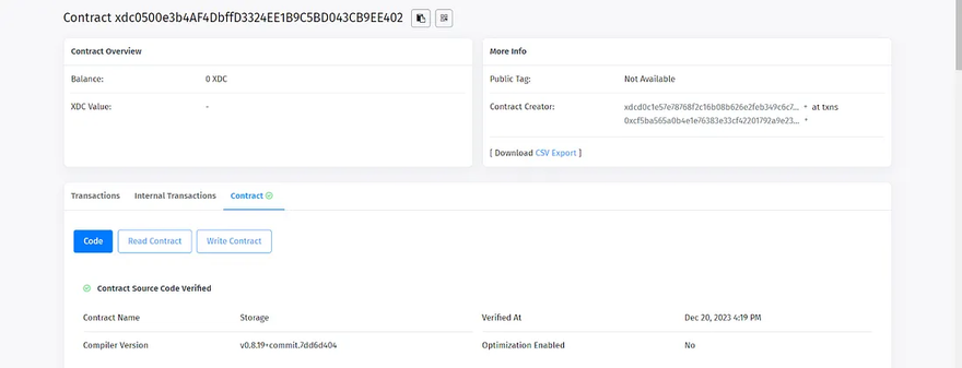 To verify a smart contract, visit XDC Apothem Network Explorer and search for the deployed smart contract using the contract address.