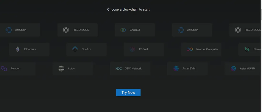 Visit the ChainIDE site and click on “Try Now”.