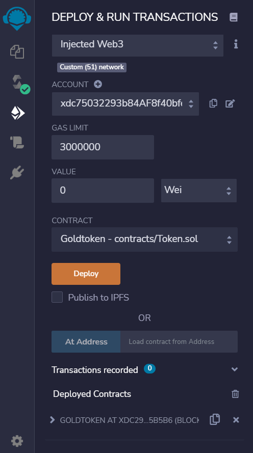 Click Deploy to deploy the token contract onto the Apothem testnet. XDCPay will now appear, so go ahead and confirm the transaction.