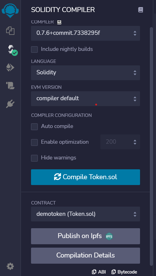 In the Remix IDE, ensure that the token contract is compiled and without any errors: