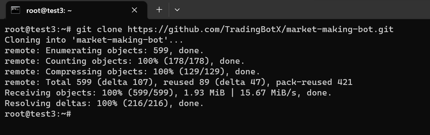 Clone the TradingBotX code to your Ubuntu server from GitHub: