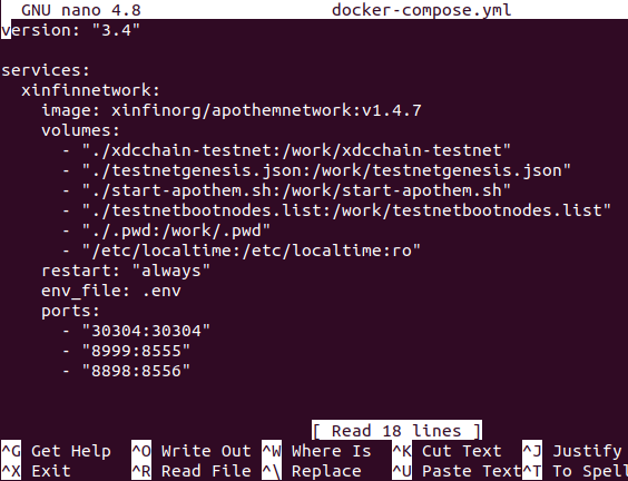 Ports on the Apothem Testnet client are different to those on the Mainnet client. From examining an Apothem Testnet client's docker-compose.yml file shown in the image below, we can see that clients on the Apothem Testnet use: