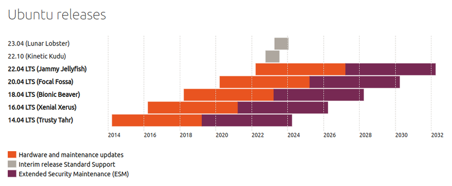 Each OS vendor has a period for which its product is supported. For example we can see in the image below that Ubuntu 20.04LTS has hardware and maintenance updates until 2025 as well as Extended Security Maintenance until 2032. Ensure your OS is supported with current updates.