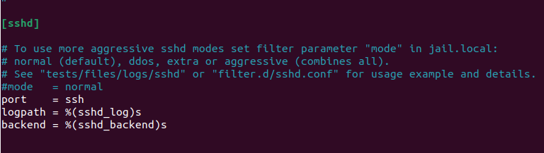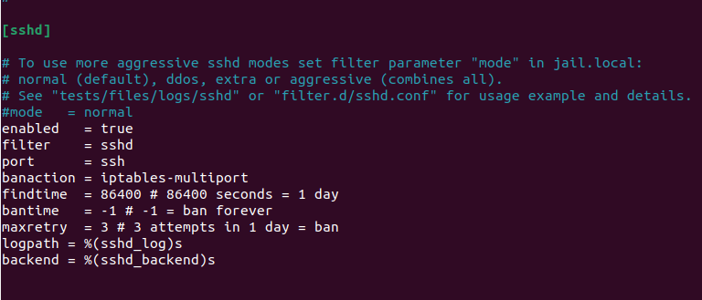 sudo cp -p /etc/fail2ban/jail.conf /etc/fail2ban/jail.local