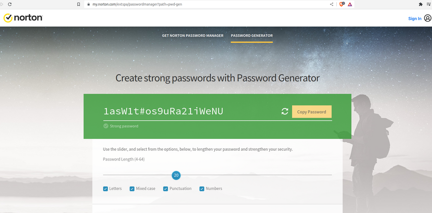 If you have difficulty generating a random password with the criteria described above, there are online password generators from reputable vendors. One example of this is the Norton Password Generator