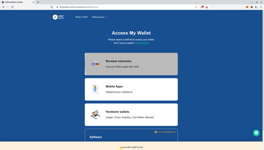 - Then tried clicking the "Browser Extension" button again but I'm still receiving the same error "No Web3 Wallet Found!"
