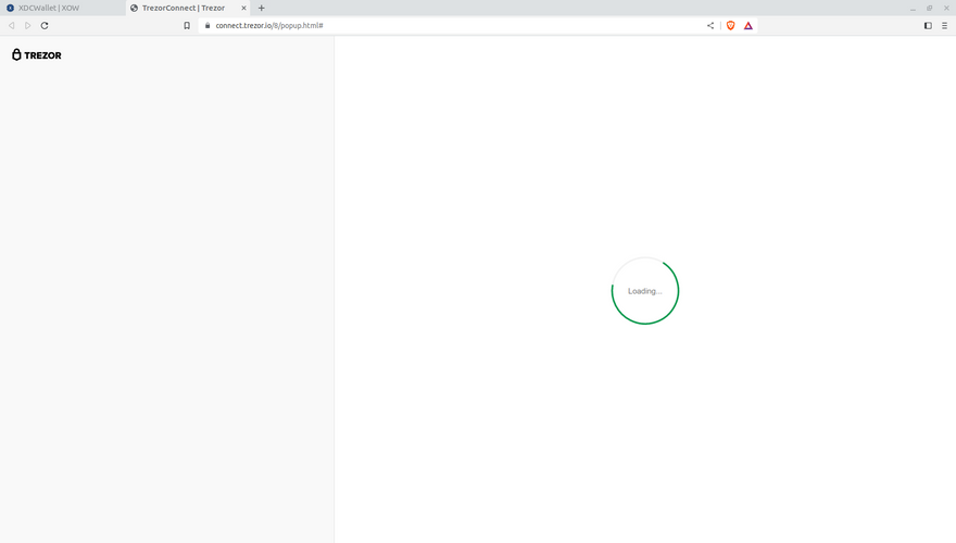 - The following page then opens in the browser but the green circle just keeps going around. Doesn't progress from here. There is also no extra information or instructions shown on the Trezor display. The web browser screen is: