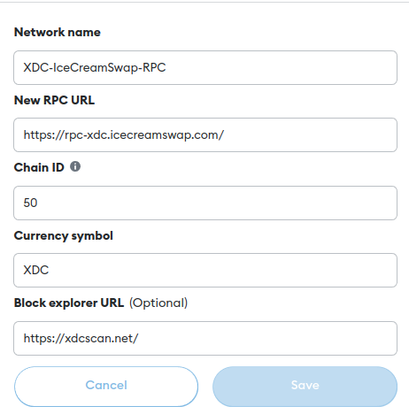 - Metamask is connected to the IceCreamSwap RPC and explorer with the following details: