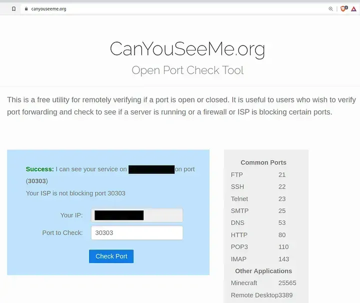 Even if you believe the port is open, double-check externally.